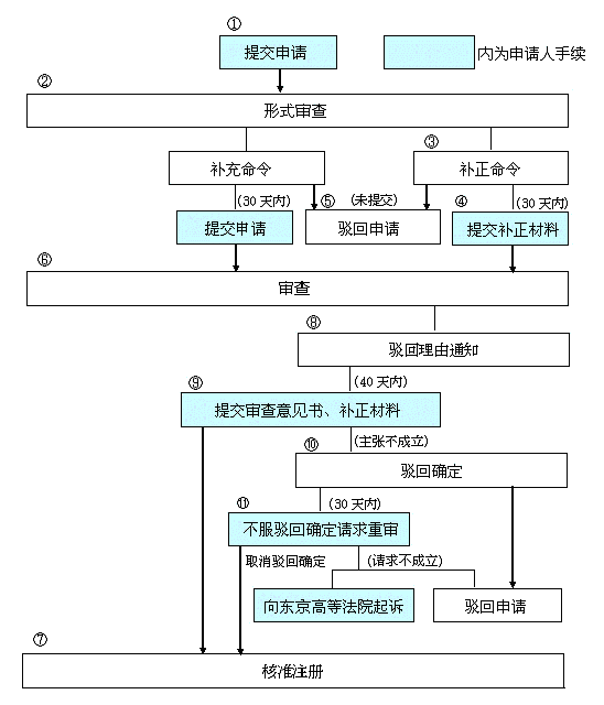 ⑦中負(fù)責(zé)的審查官,確定沒有駁回注冊(cè)理由時(shí),向申請(qǐng)人發(fā)出核準(zhǔn)確定的通知。